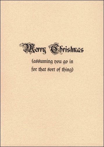 Illustrated with an exquisite 19th century German architectural drawing, this card is a good example of the kind of mischief our designers are liable to get up to if we don't keep them firmly in hand. For the record, the statues of Peter and Jesus are quoting Luke 2:14, while the gargoyle appears to prefer Dickens.