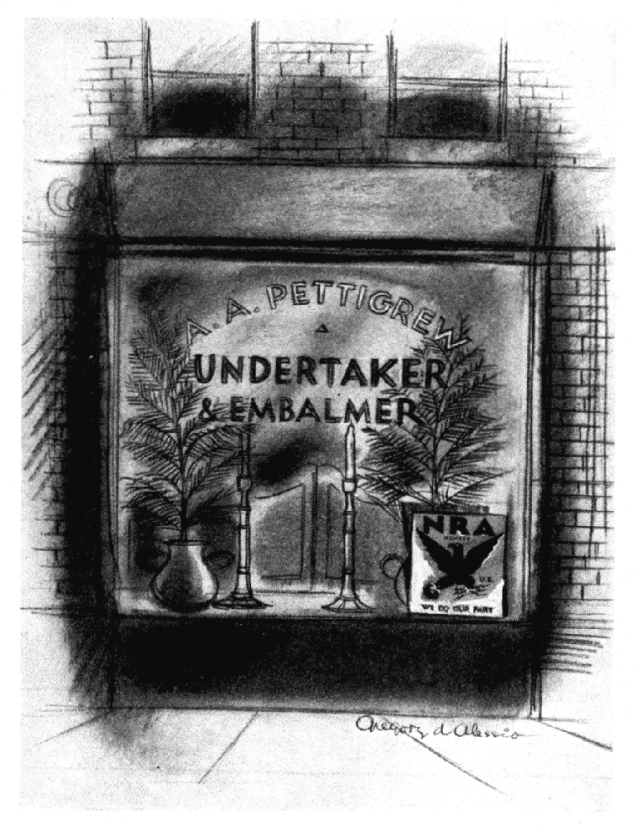 The New Deal was Roosevelt’s ambitious attempt to reorganize and revive the American economy. The National Industrial Recovery Act of June 1933, which created the National Recovery Administration (NRA), was one of its early components. As part of the publicity campaign surrounding the NRA, businesses all over the country posted “blue eagle” signs with the slogan “We do our part.” The ubiquity of these signs was an obvious target for cartoons like this one by Gregory d’Alessio, from September 1933.