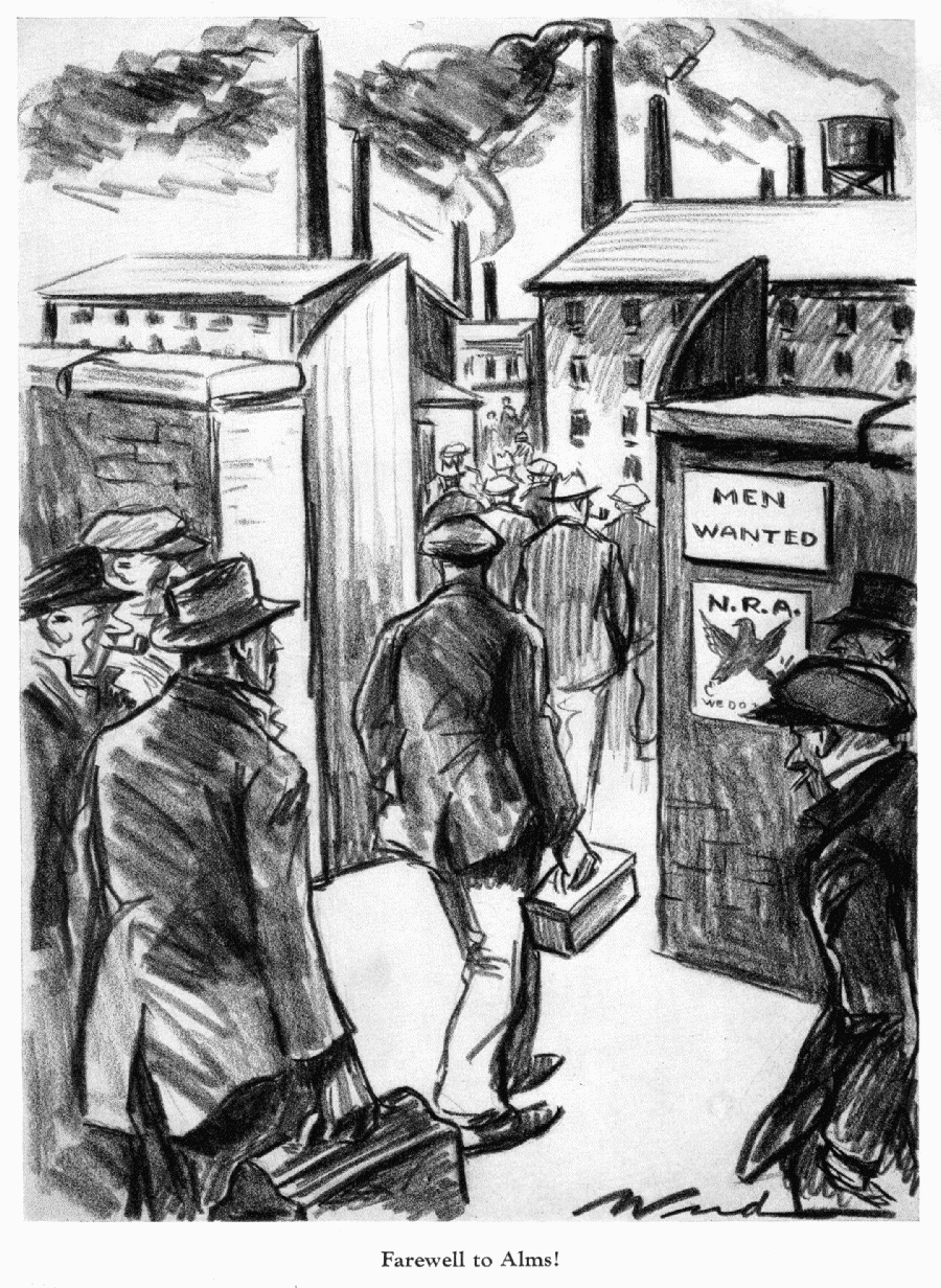 The next two cartoons, by an artist whose signature I don’t recognize, are unabashedly pro-NRA. The first is from October 1933.