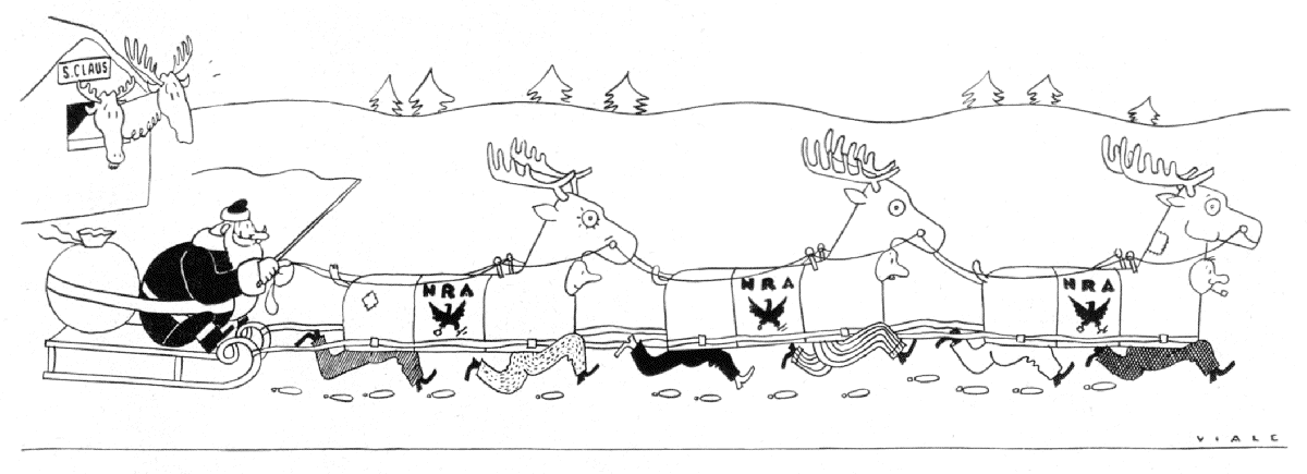 Finally, this cartoon by Albert Viale, from December 1933, gives a playful, holiday take on the NRA.